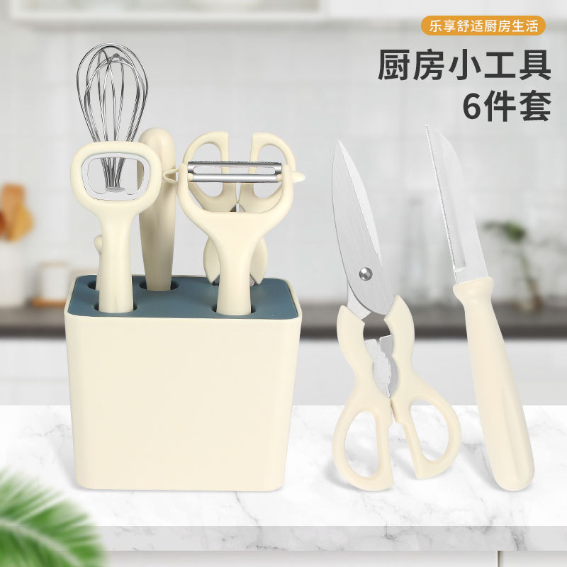 越境キッチンガジェット6点セット家庭用補助食工具皮むき器ハサミ卵器フルーツナイフ収納台