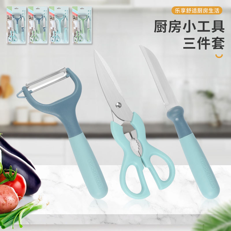 キッチンガジェットセット家庭用キッチンはさみフルーツナイフ3点セットステンレス鋼皮むきナイフナイフセット