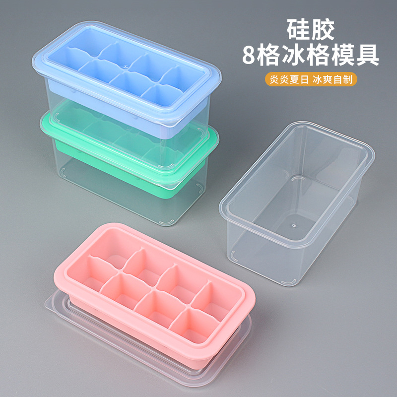 国境を越えた新型シリカゲル氷金型8格氷格貯蔵箱付き家庭用シリカゲル製氷箱蓋付き