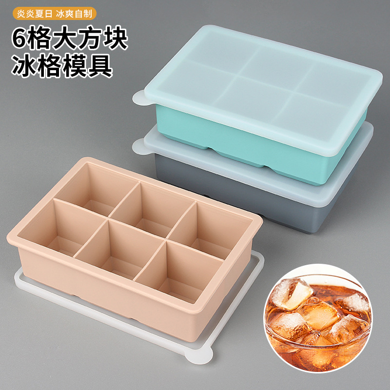 クロスボーダーシリコーン製氷皿 6 ピース大型アイスキューブ製氷型家庭用食品サプリメント製氷皿アイスキューブ型蓋付きアイスキューブボックス