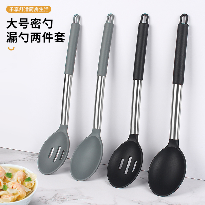 シリカゲル調理器具セットシープスプーン2点セットシリカゲル攪拌スプーンセットステンレスパイプ柄調理スプーン