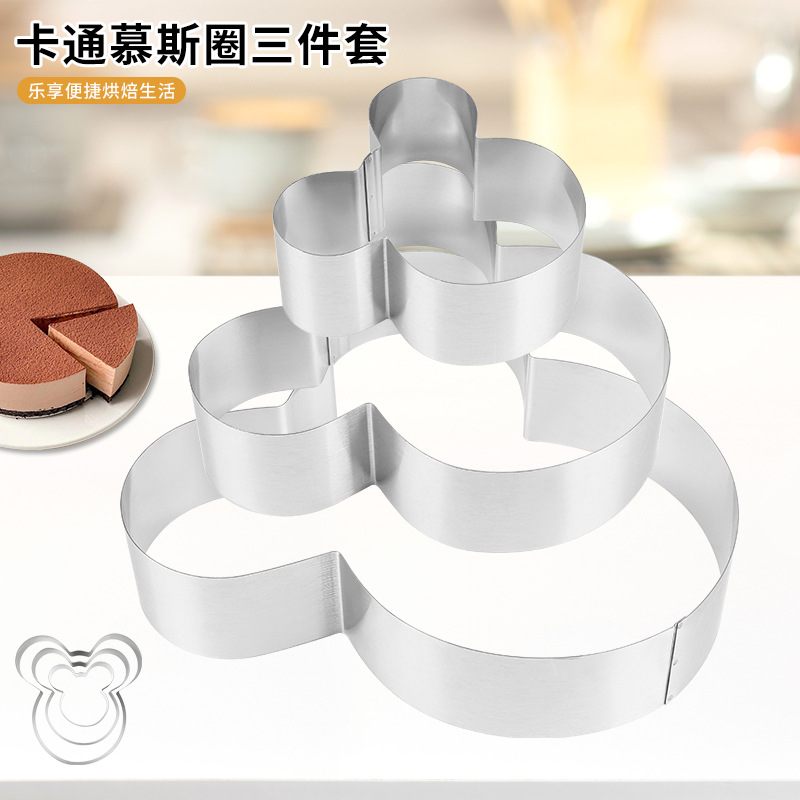 ベーキングツールステンレスアニメのムースサークル三点セット熊ムースサークルセットクッキー型ケーキ型