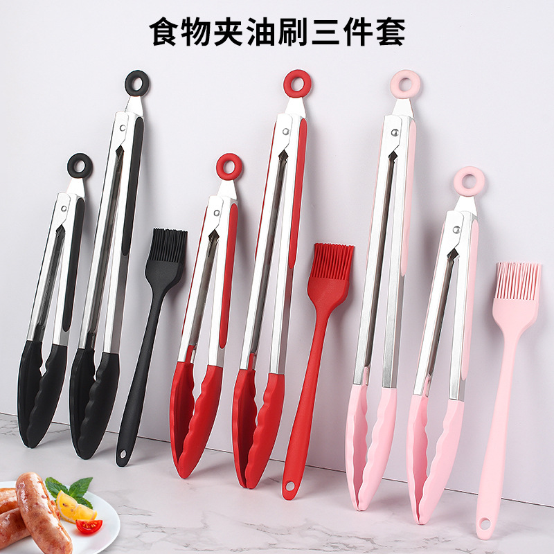 焙煎ツールセット9インチ12インチ食品クリップオイルブラシ3点セットシリコン油ブラシバーベキュークリップステーキクリップ