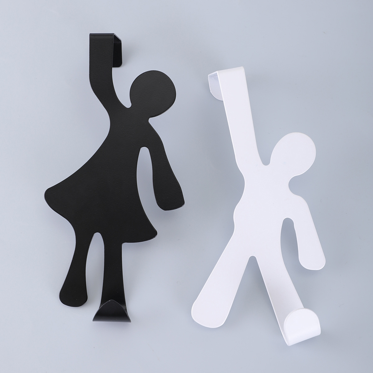 国境を越えた売れ筋のクリエイティブでファッショナブルな黒と白の小人フック、寝室のドアの後ろに穴を開けずにドアフック、シンプルな洋服掛けシングルフック