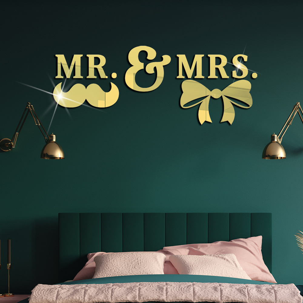 クロスボーダーmr & mrアルファベットコンビネーション蝶結びアクリル鏡貼り立体自己接着diy鏡壁貼り