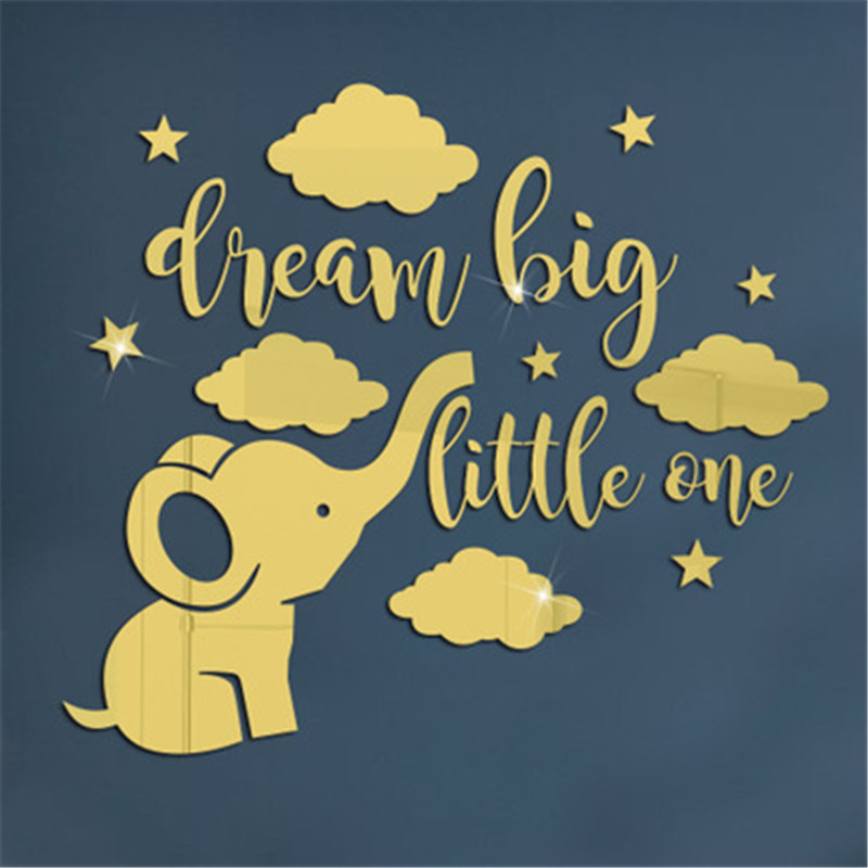 Jm612英語のアルファベットの象の雲の組み合わせのアクリルの鏡の貼り付けの立体の自己接着のdiy漫画の鏡の壁の貼り付け