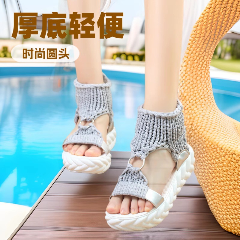 国境を越えた新しいサイズの厚い底の軽い編み物のスリッパの女性欧米の新しいカジュアルな毛糸の丸い頭のローマのサンダル