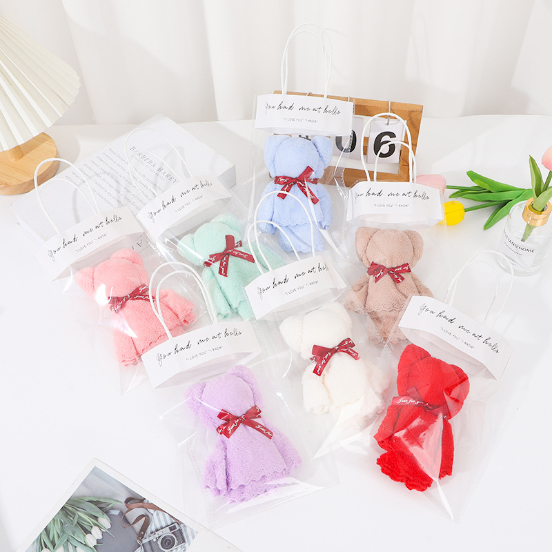 ケーキタオル、吸水性のあるコーラルベルベット、クマの形をしたギフト、結婚式のお土産、おすすめのギフト