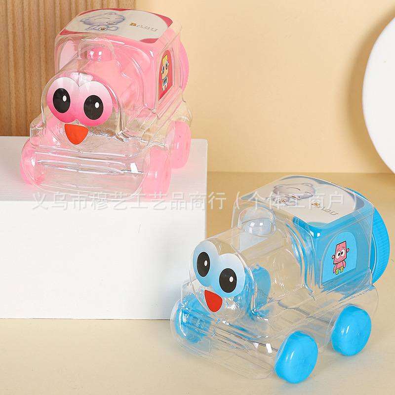 車の形の透明なプラスチックの瓶の食品級の子供の間食の缶の皮の筋の宇宙の砂は瓶のメーカーの卸売りを収納します。