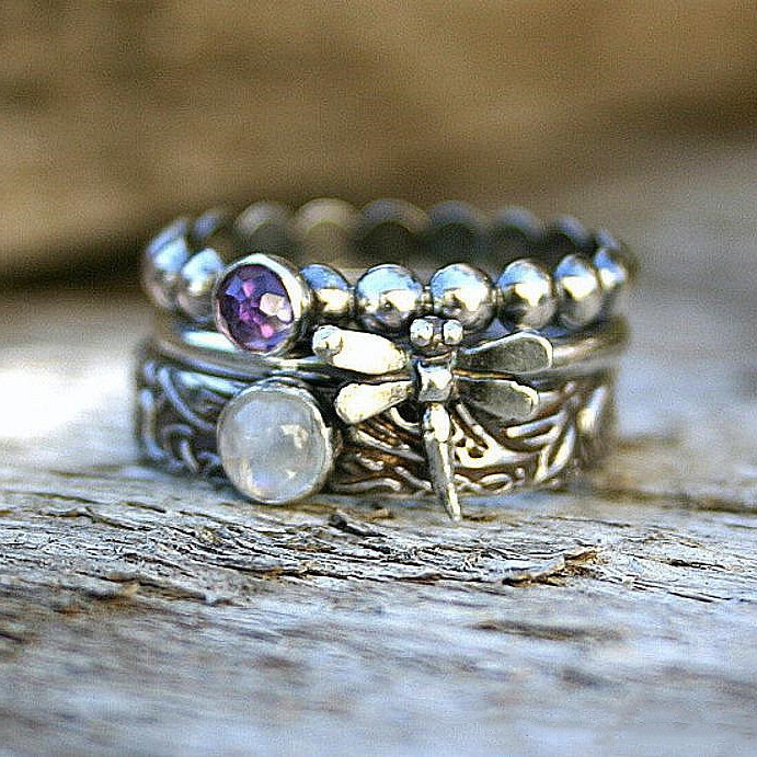 国境を越えてレトロな個性的な指輪wishの新しい三合一の女性指輪トンボ動物の指輪