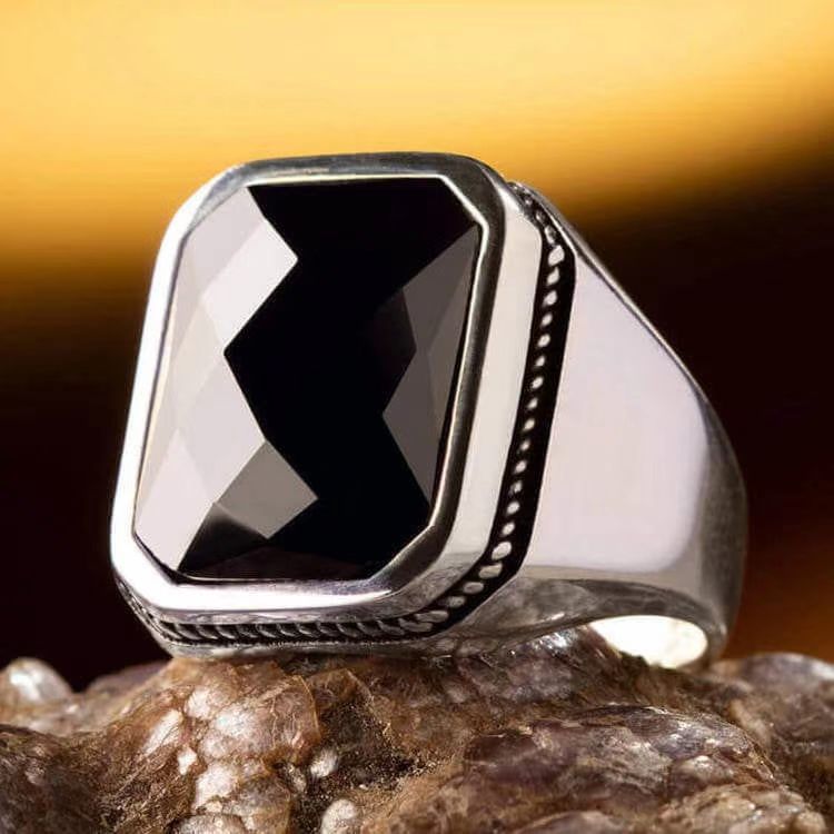 クロスボーダー熱売合金男性覇気指環欧米レトロ黒宝石鋳造指輪男性式対外貿易