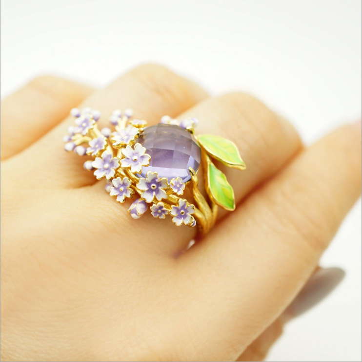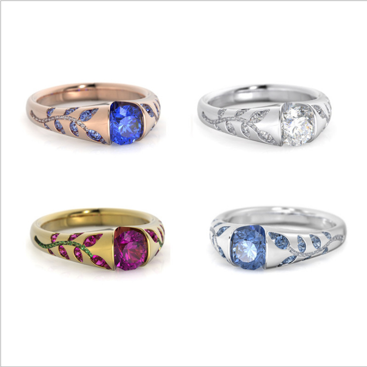 イネは国境を越えて売れている宝飾品の多色の美しい木の葉の金に宝石の金の指輪をはめ込んで個性がシンプルな風メーカー直販をしている