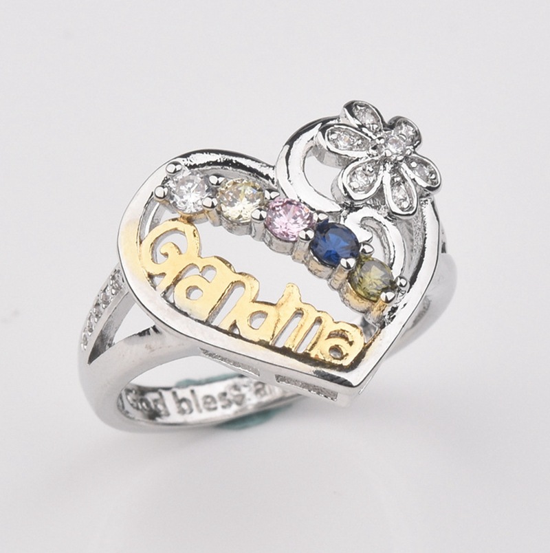 イネはwishの新しいタイプのダイヤモンドのグランドmaの祖母の指輪のハート型を呈して925銀の色の指環の母の日をめっきします。
