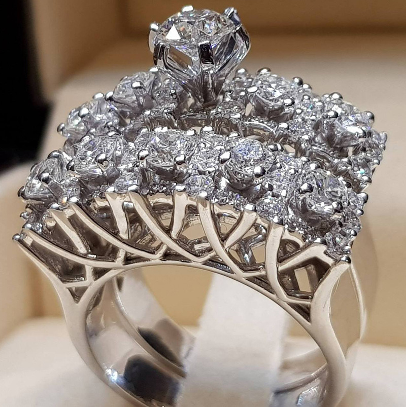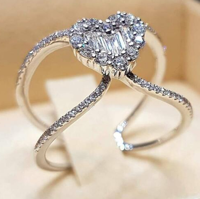 新しいクリエイティブな透かし彫りダイヤモンド付き婚約指輪、女性用セットリング、ヨーロッパとアメリカの宴会用ジルコン結婚指輪