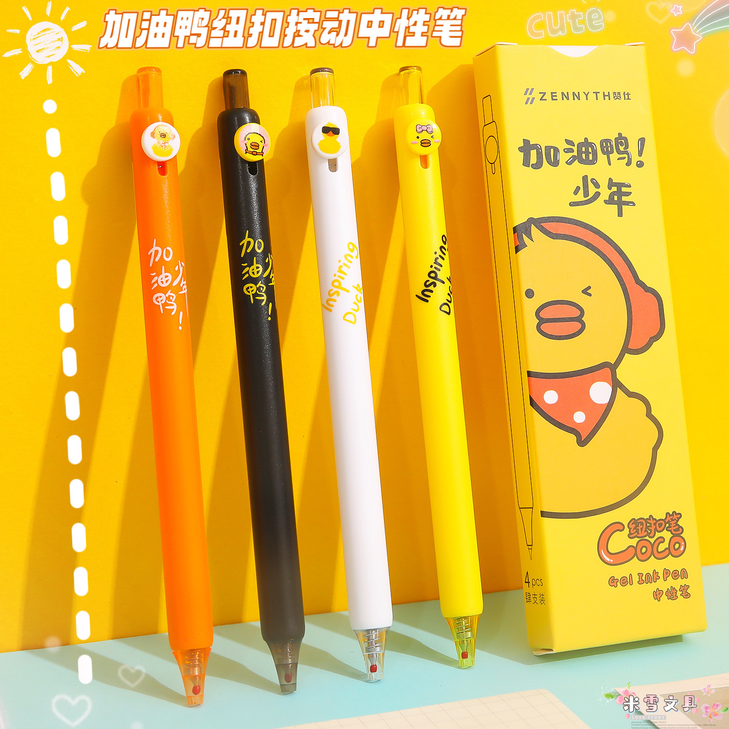 創意的なボタンのペンは給油します。アヒルは中性のペンを押します。