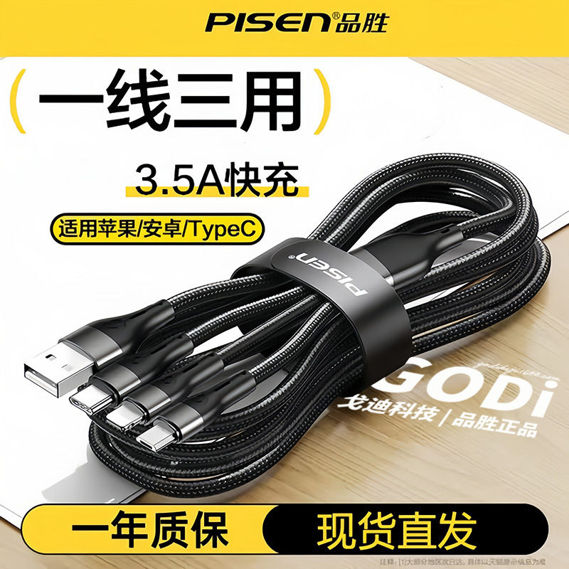 Pinsheng Type-c スリーインワン 100W 高速充電データケーブル Apple Huawei 車用 1 対 3 充電ケーブルに適しています