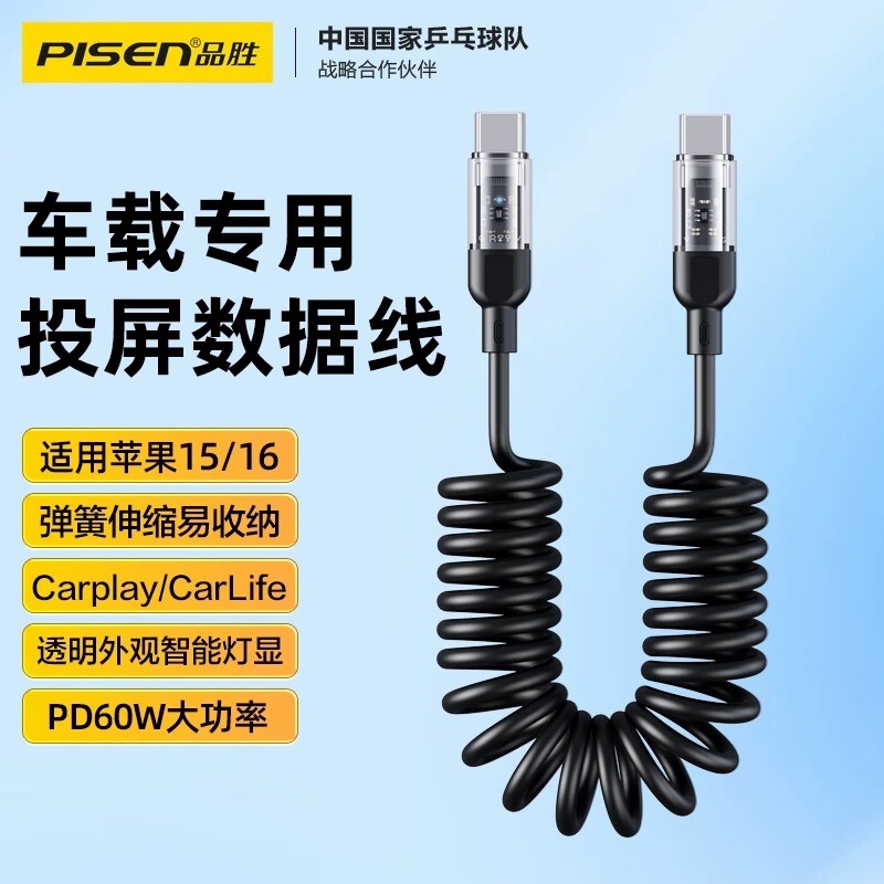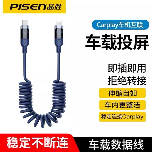 品勝スプリング伸縮急速充電ケーブルはアップル15 iphone14 pro車載carplay充電ケーブルを適用する