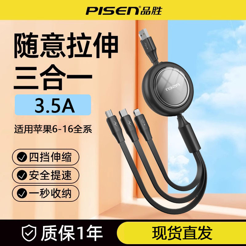 品勝三合一データ線3A急速充電線伸縮一引き三データ線印刷ギフトロゴ
