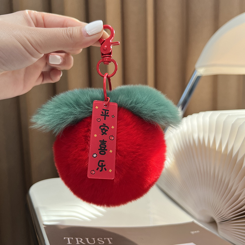 ウサギの毛の小さいリンゴの車のキーホルダーのペンダントinsのかわいいぬいぐるみのかばんのペンダントの誕生日プレゼントのボール