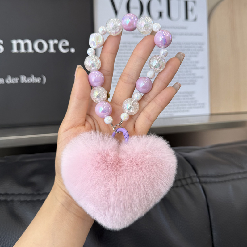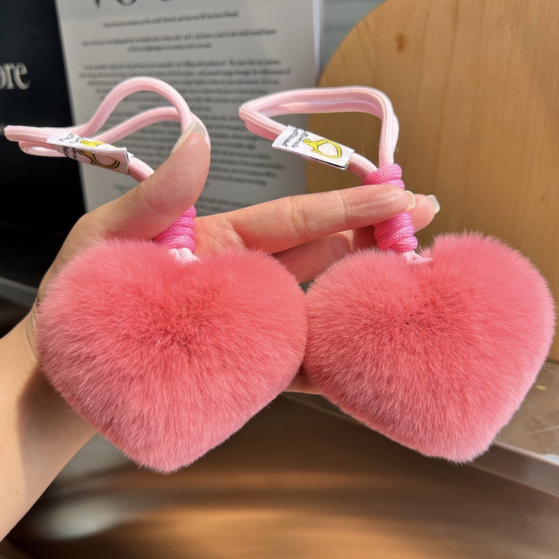 かわいい本物のウサギの毛の愛の手の縄のキーホルダーのペンダントの創意的なぬいぐるみのハート型の桃の心のかばんは贈り物を飾ります。