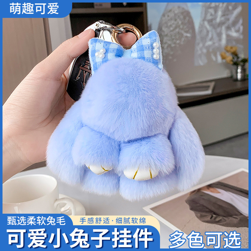 かわいい本物のウサギの毛の蝶結びのウサギの車のキーホルダーのペンダントinsのぬいぐるみのカバンのペンダント