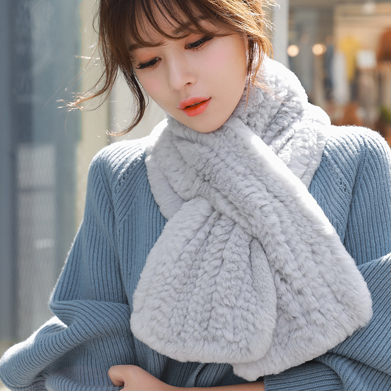 空気型の韓国版のウサギの毛皮のマフラーは手でウサギの毛のマフラーを編みます。
