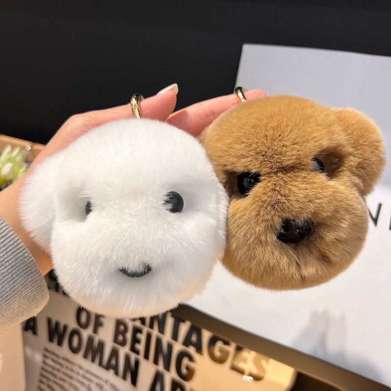 かわいいウサギの毛の子犬の車のキーホルダーのペンダントのかわいいぬいぐるみの子供のテディの包みは贈り物を飾ります。