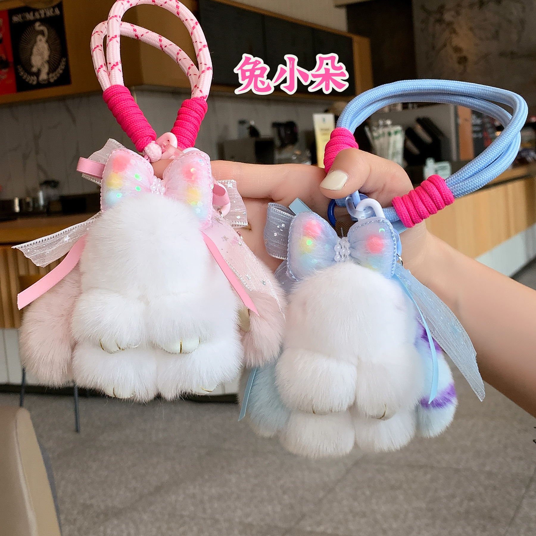 ドーパミン癒し系かわいいテニスは、ウサギの毛玉の車のキーホルダーのストラップの柔らかい萌え毛玉を真似ている