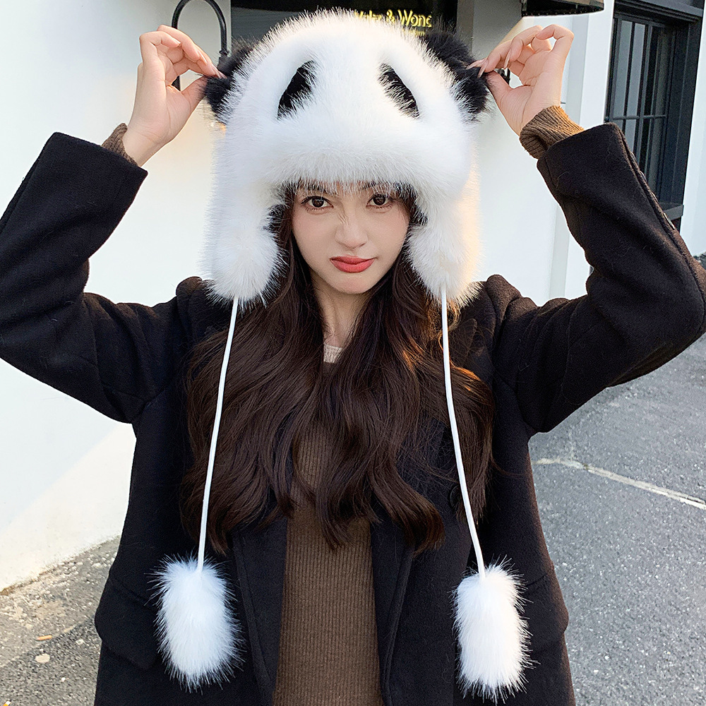 かわいい冬はキツネの毛のパンダの帽子をまねて、防風の耳の帽子を保護します。