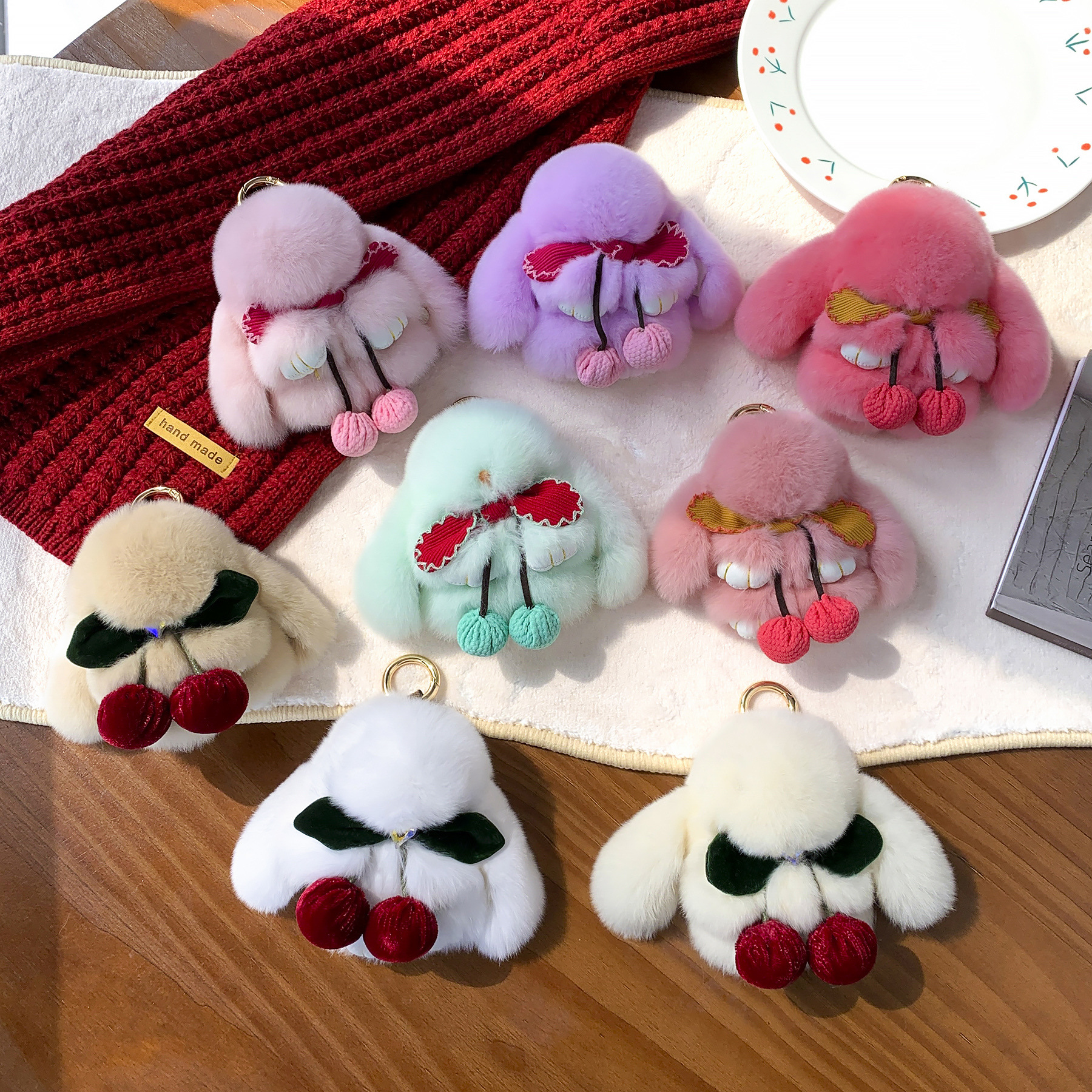 ウサギの毛のキーは毛皮のぬいぐるみを掛けます。