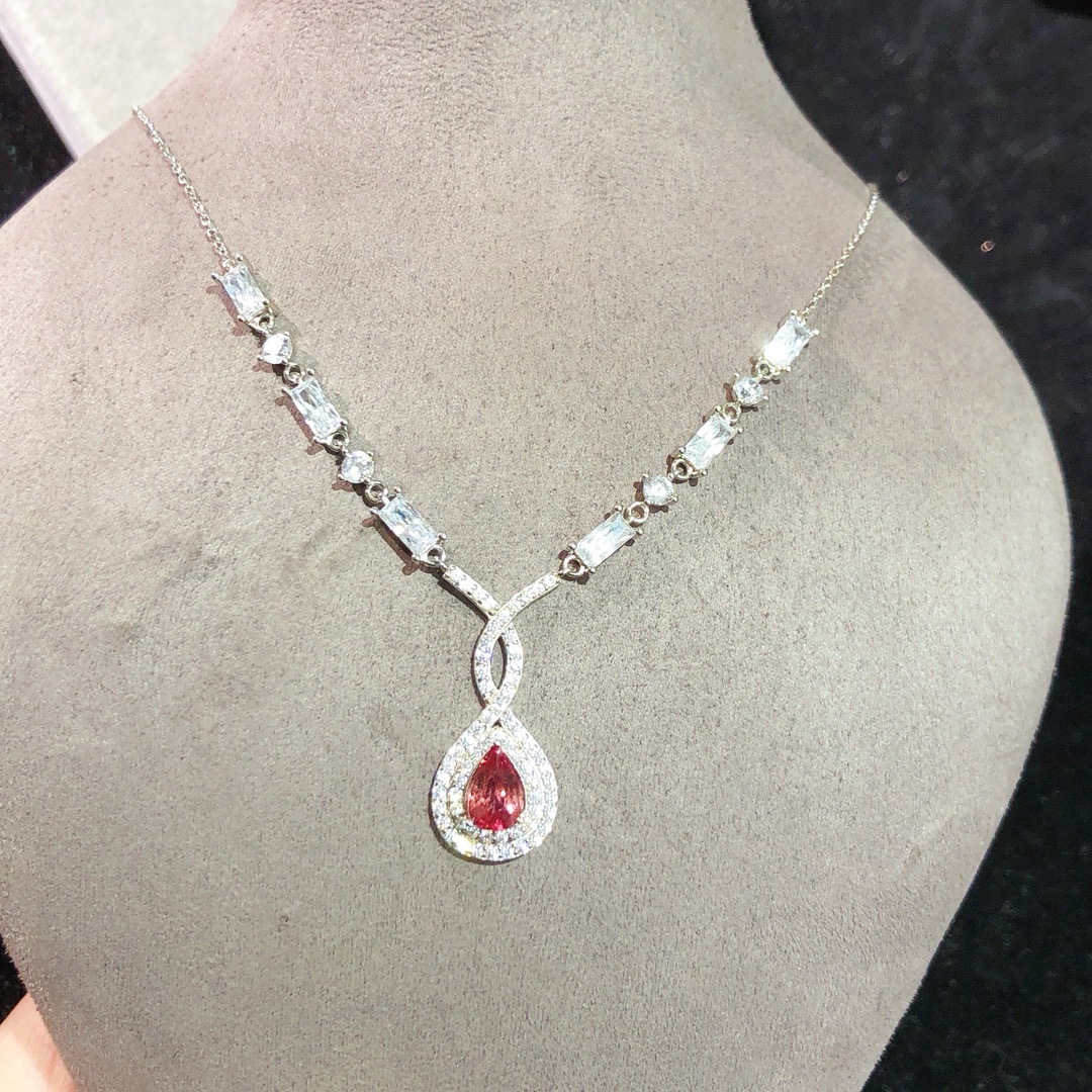 S925銀軽豪華天然紅碧璽ネックレスファッション百合気質個性大衆デザイン高級感鎖骨鎖