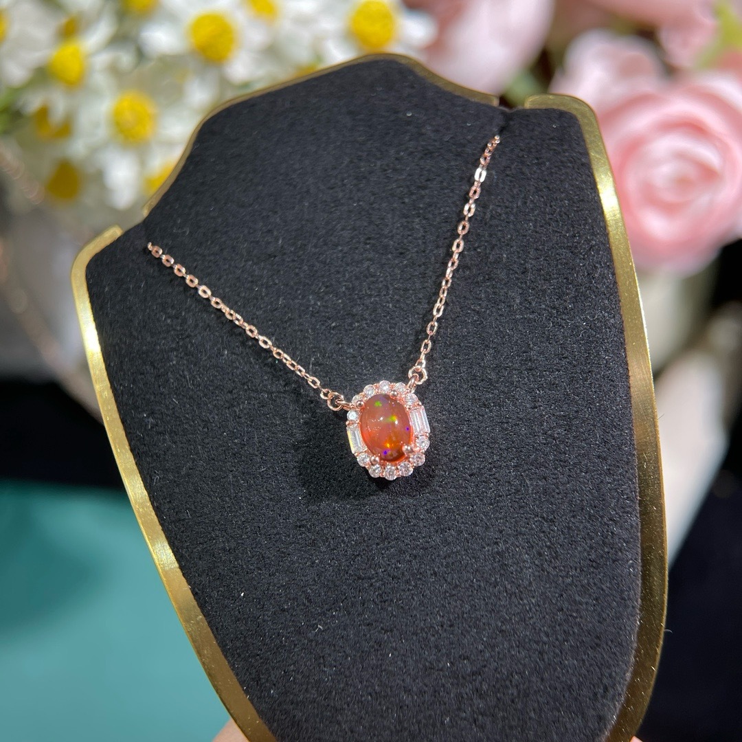 国境を越えた生放送で人気のファッションカラー宝天然火欧泊ネックレス主石5x7mm婚約ジュエリー