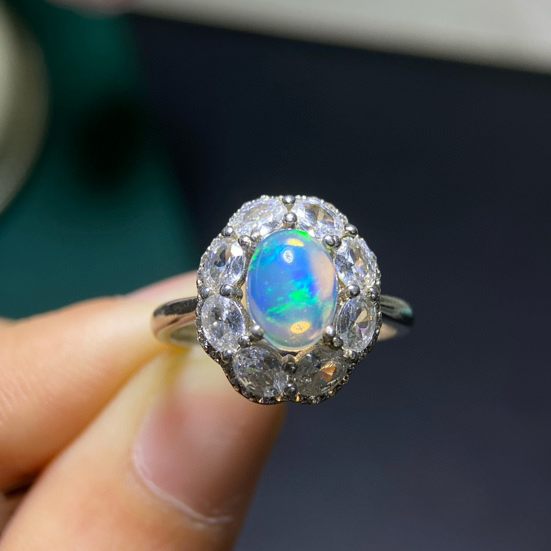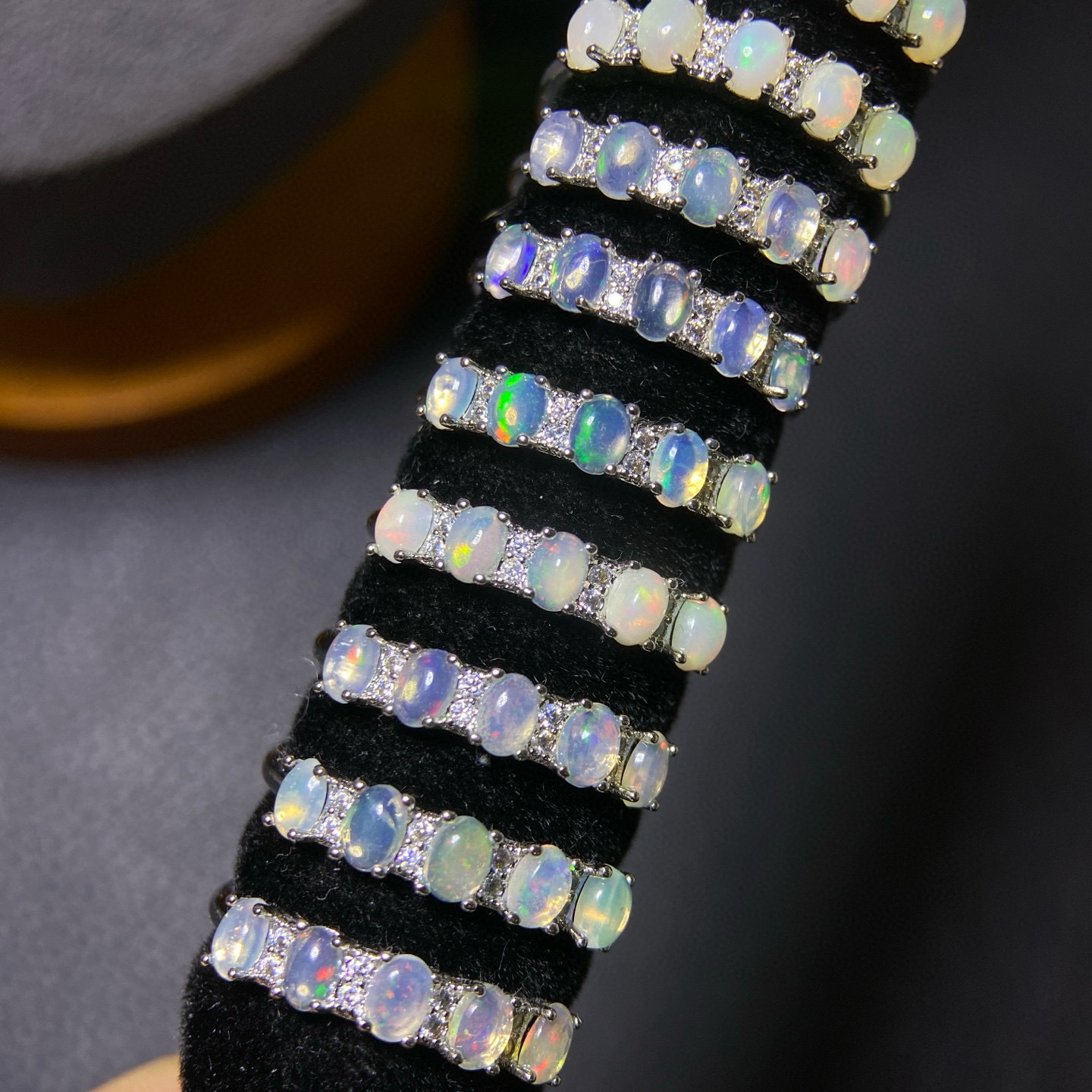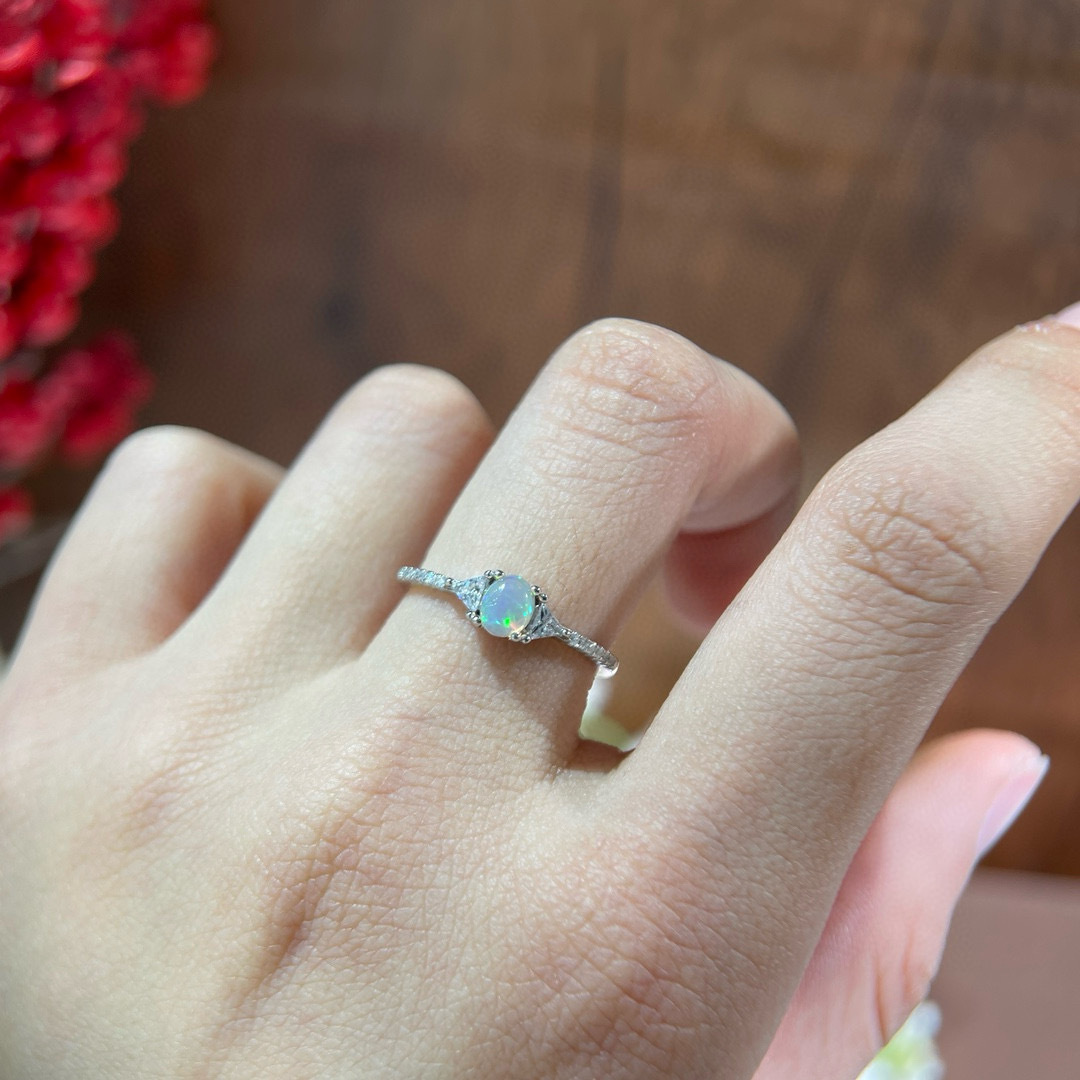 天然欧泊火彩楕円形排戒銀色の古典的なドリル付きシンプルな指輪3x4mmメーカー直販