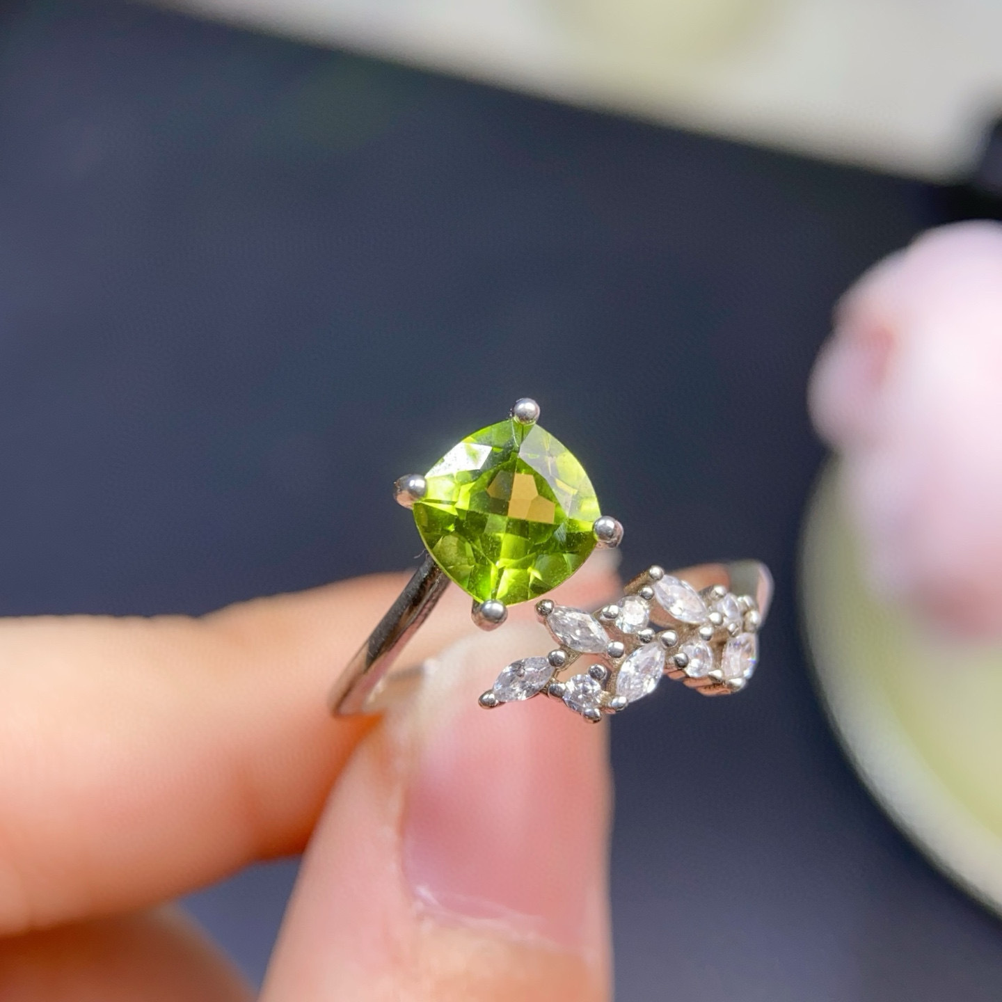天然オリビン指輪s925純銀モザイク主石サイズ7mm天然サポート検査工場卸売り