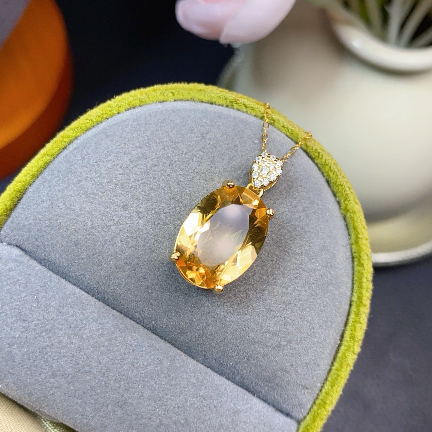 天然黄水晶ペンダント女性大粒宝石主石10x14mmメーカー直販工場の起爆金