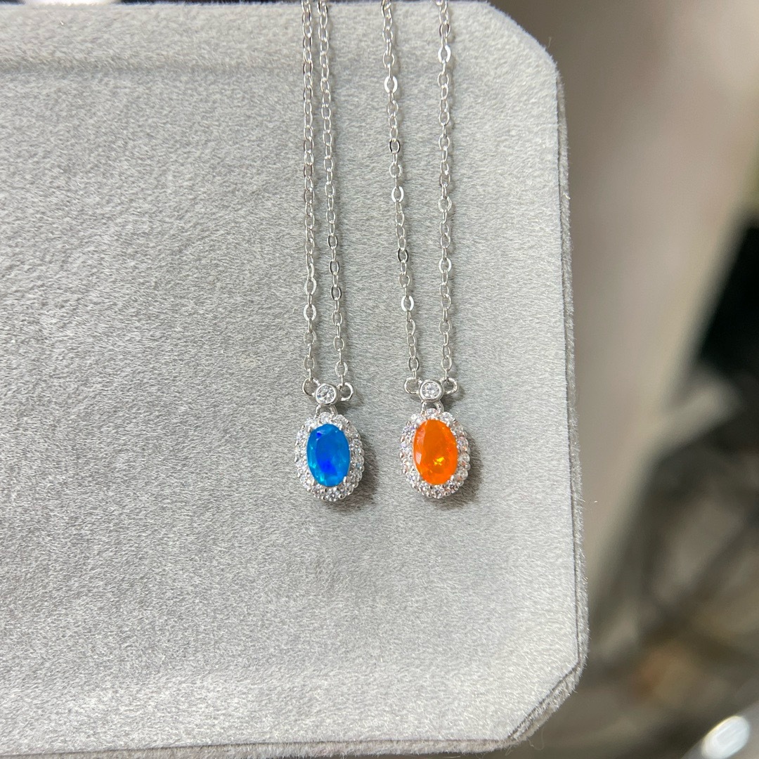 天然カラーブルー欧泊火欧泊ネックレス火彩主石4*6mmS925銀セイコーは震え音をつけて供給した