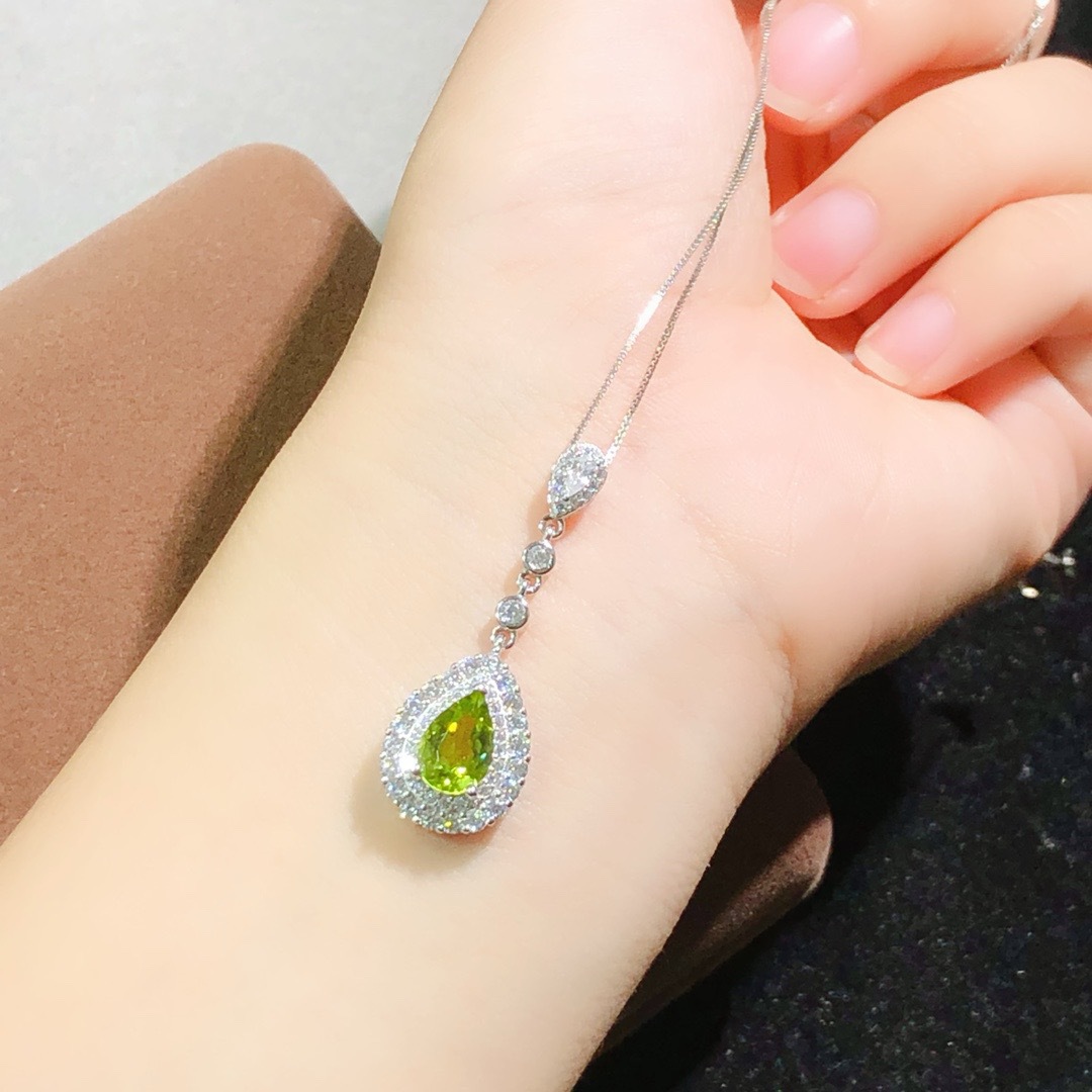天然オリーブ石水滴梨形ペンダント震え音生放送基地検査天然オリーブ石彩宝ペンダントネックレス