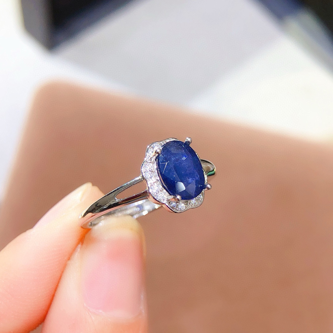 天然ロイヤルブルーサファイアの指輪の色がいい粒粒はすべて逸品S925銀セイコーが主石6x8をはめ込んでいます。