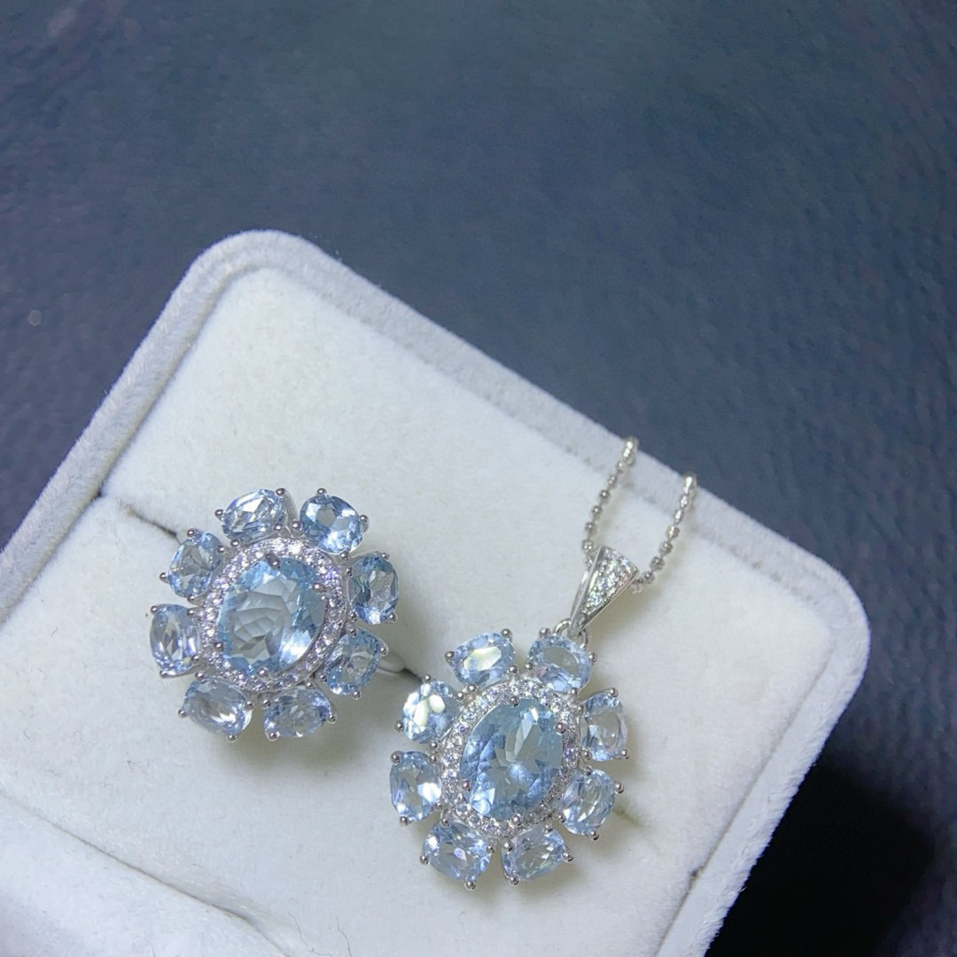 天然海藍宝セット全浄体品質主石4*5、7*9mm925銀象眼保色時間が長い