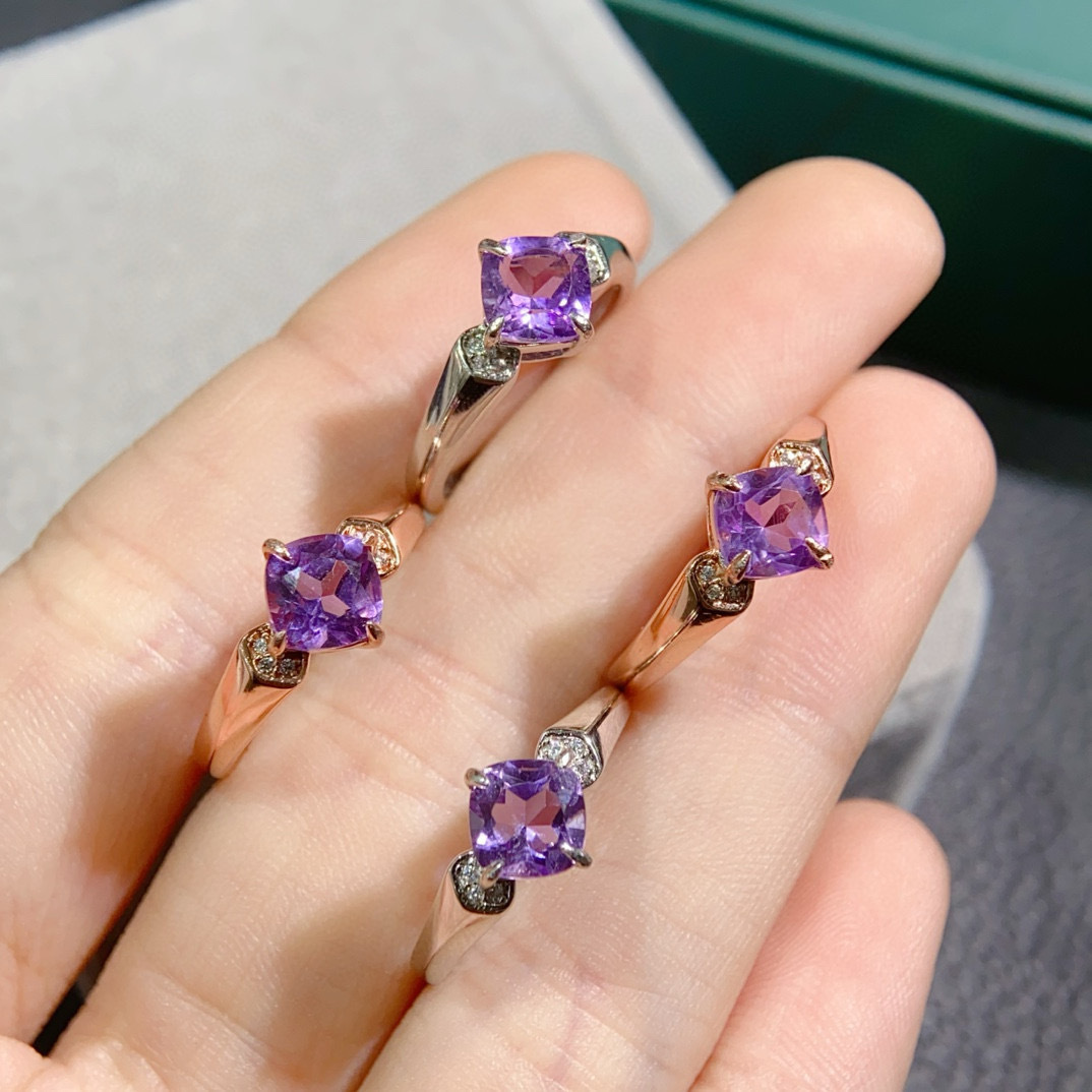 純粋な天然紫水晶指輪の女性の色は超素晴らしい神秘的な夢紫天然水晶紫6*6mmである