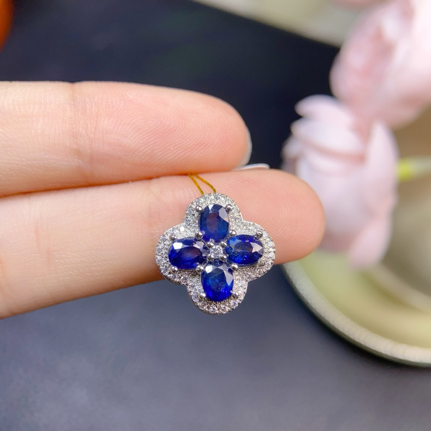 天然スリランカサファイアペンダント高清浄度裸石4*5mms925銀セイコーモザイク重厚用銀