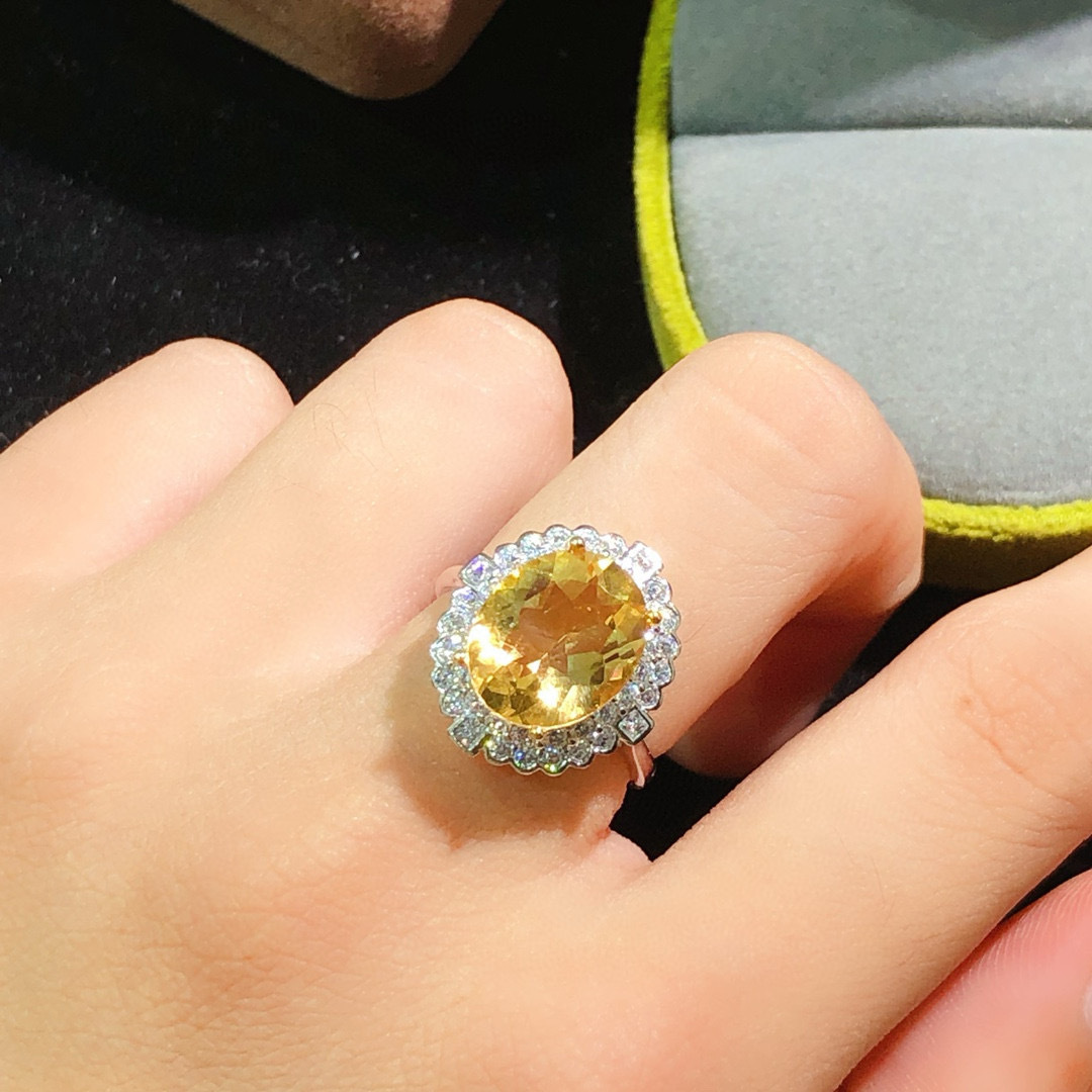 新商品卸売り925純銀モザイク天然黄水晶指輪メーカー直販大粒主石10x12mm