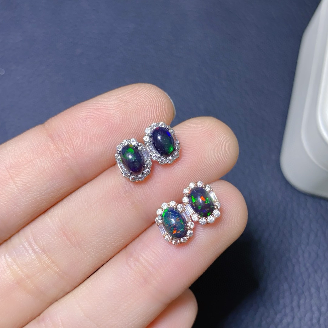 工場卸売りの爆発金天然黒欧泊ピアスS925銀モザイク主石4*6人気欧米の代理店
