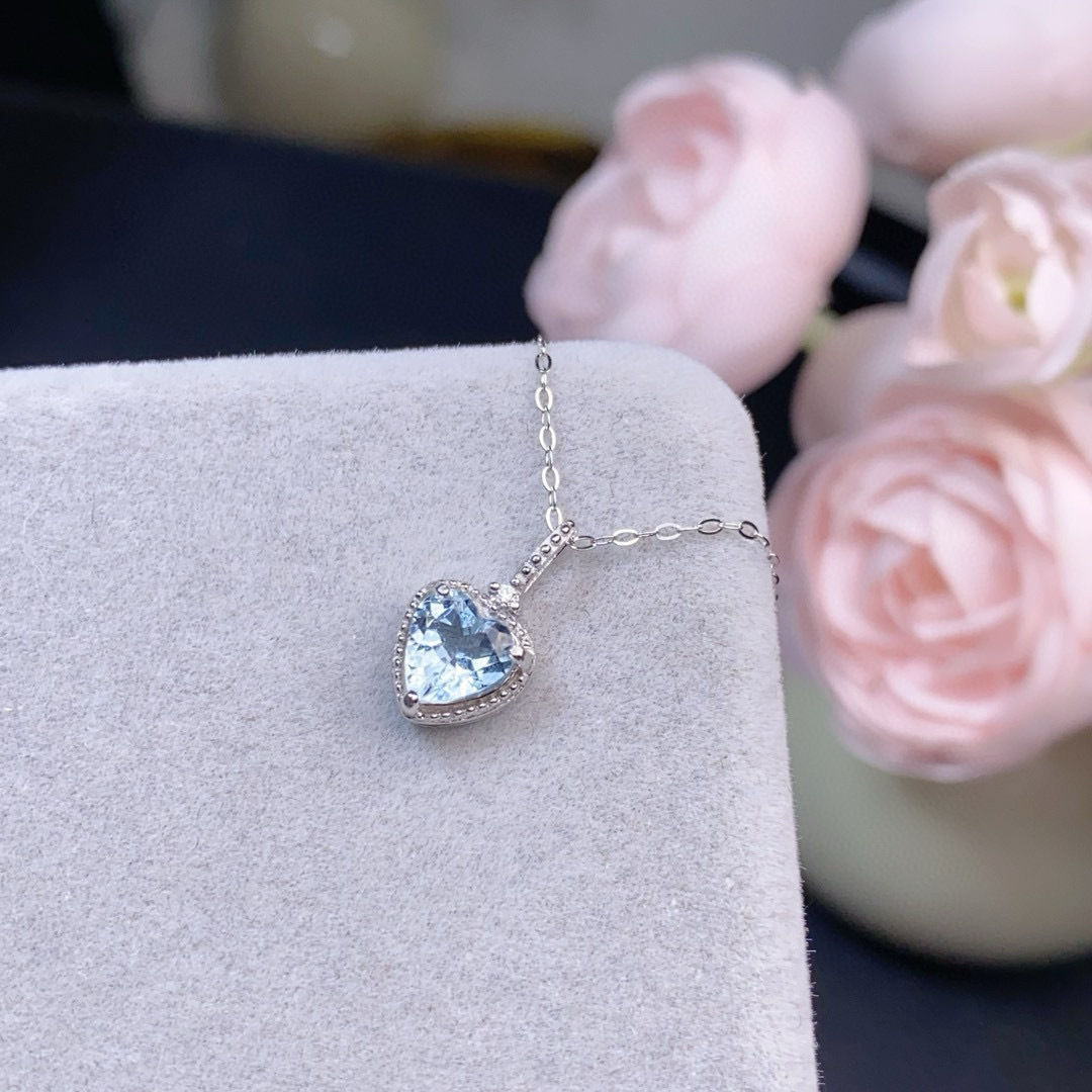 天然アクアマリンペンダントクリスタル、クリアなメインストーン約6mm、S925シルバー象嵌、精巧な電気メッキ加工