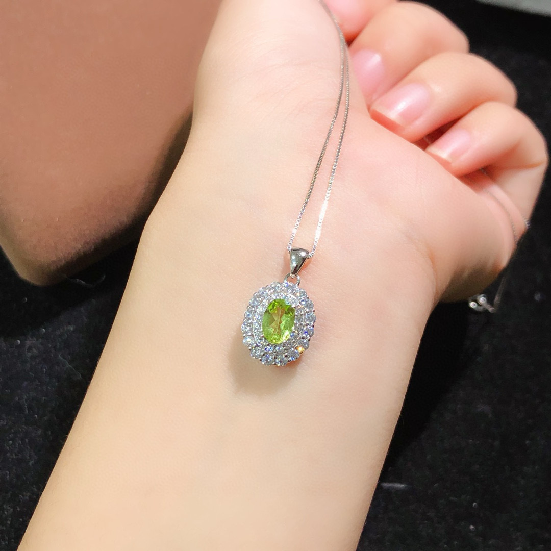 925銀モザイクカラージュエリー女性ジュエリーペンダントアクセサリー天然オリビンレトロ小清新ペンダント