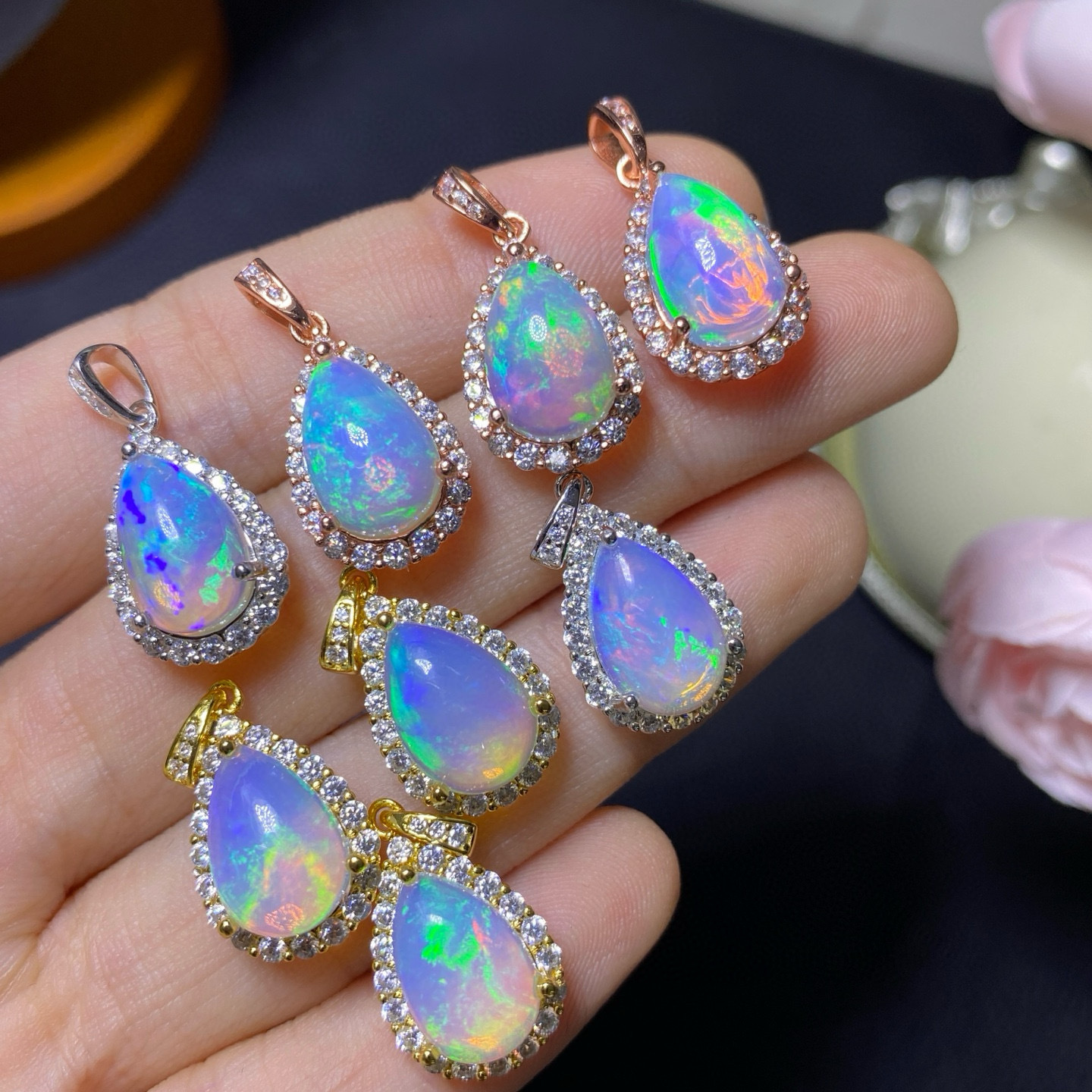 純銀モザイク天然欧泊ペンダント女性ファッション大気主石8x12mm大粒水滴メーカー直販