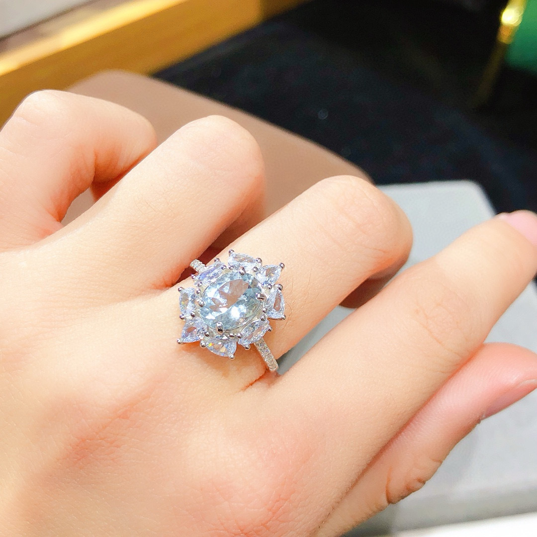 天然海藍宝指輪結晶清潔主石7*9mm値圏活口は指囲s925銀モザイクを選ばない