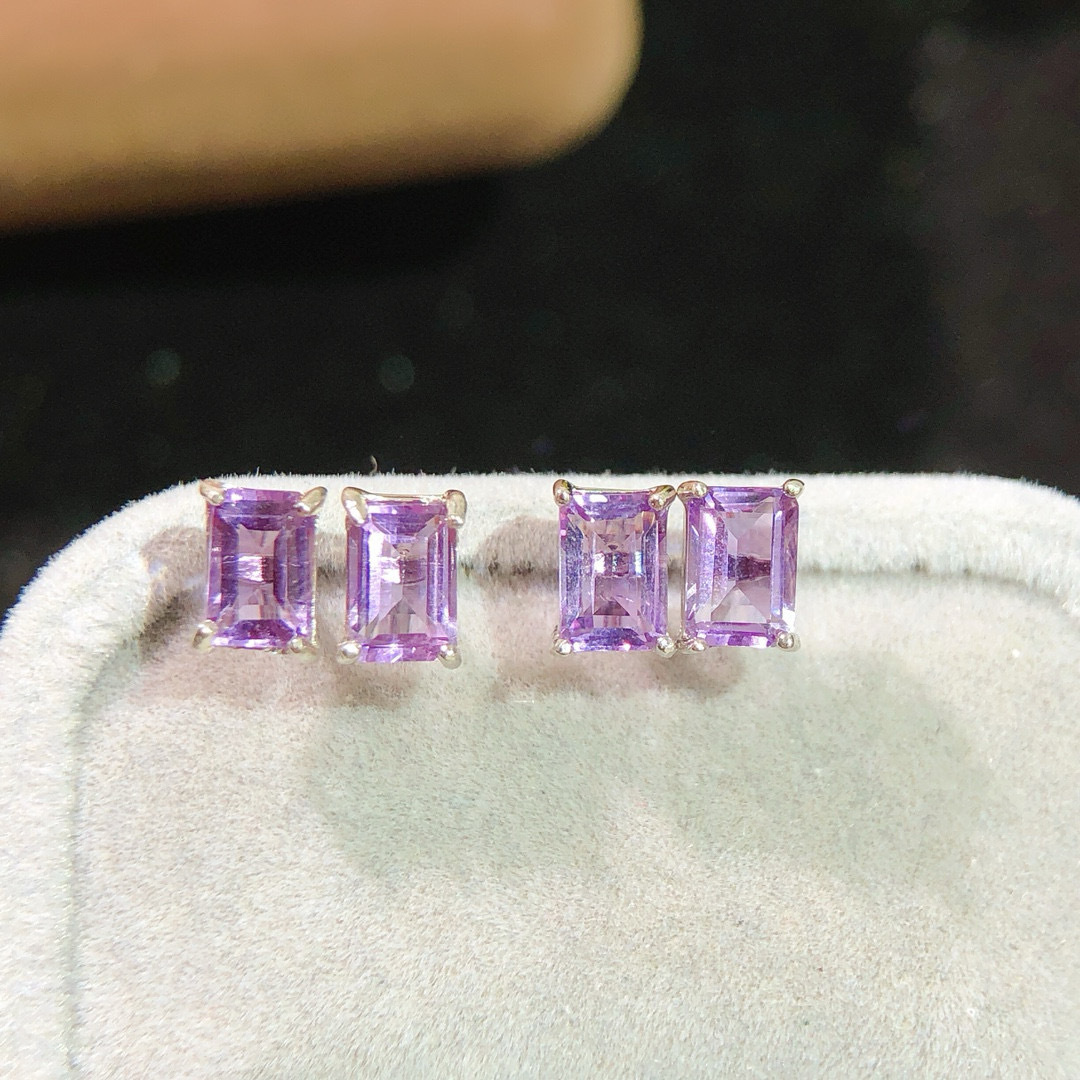純粋な天然紫水晶ピアス神秘夢紫結晶清潔4*6mm高級s925純銀モザイク