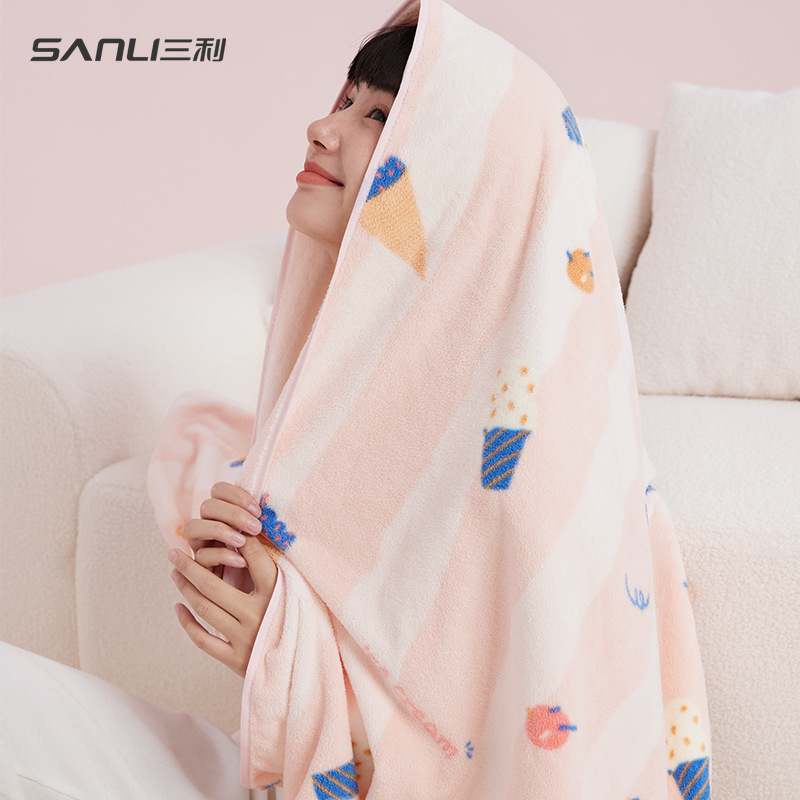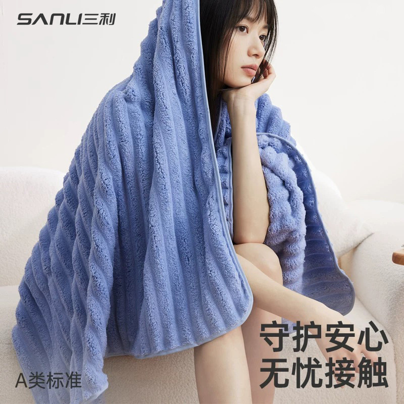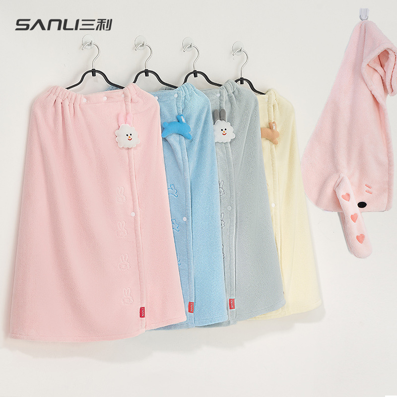 三利タオルコーラルベルベットはバスタオルを着ることができます。