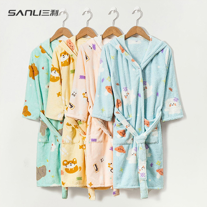 三利タオル赤ちゃんパジャマ漫画パジャマ冬フード付きバスローブフランネル子供服コーラルベルベットホームウェア